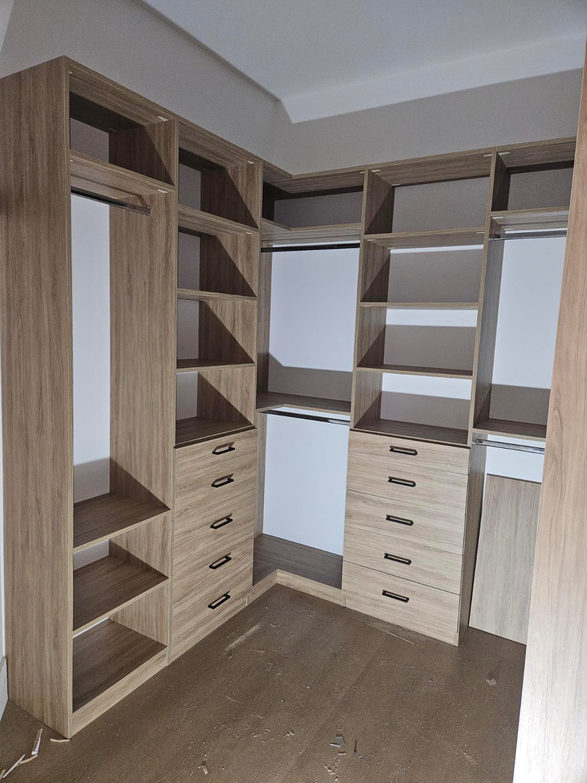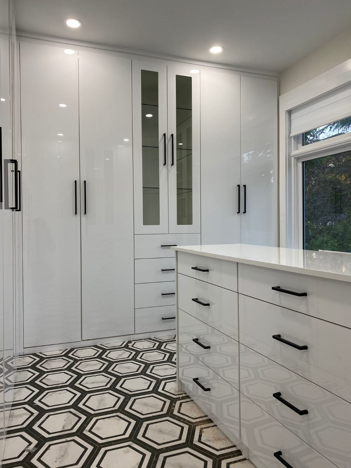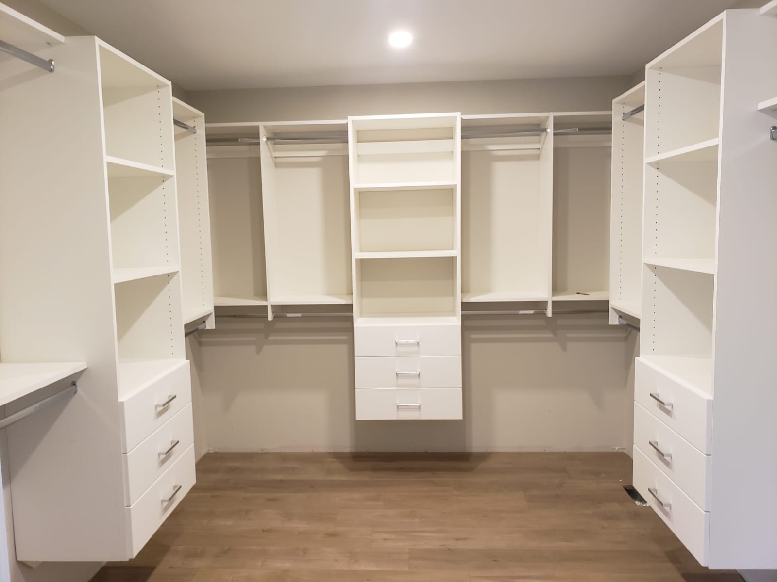 - Custom-designed layout for walk-in closet functionality